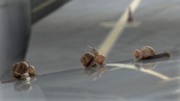 Pris dans notre temps d’humain, nous manquons l’incroyable. Au sein d’un aéroport, sur une aile d’avion, sous nos yeux, une troupe d’escargots exécute une magnifique chorégraphie, jusque dans les airs !