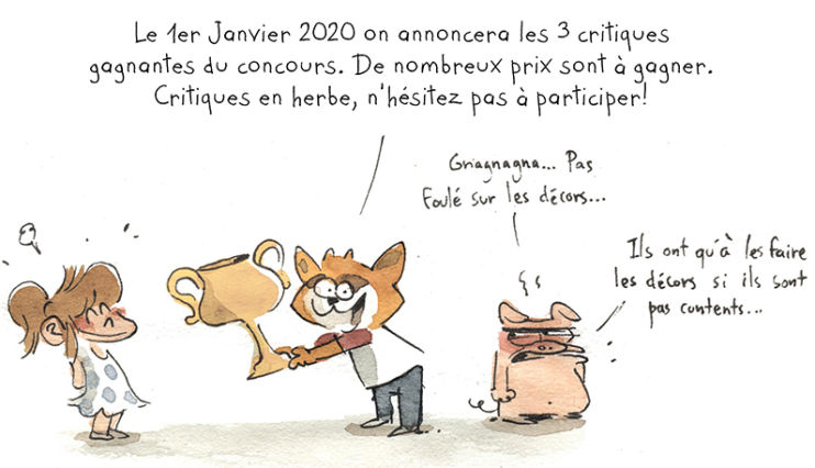 Découvrez une planche originale du parrain Benjamin Renner, pour en savoir plus sur les modalités du concours de critiques :