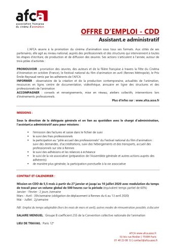 Sous la direction de la déléguée générale et en lien au quotidien avec le chargé d’administration, l’assistant.e administratif aura pour missions :