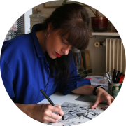 Marion Lacourt vit et travaille à Paris. Illustratrice, graveuse et réalisatrice de films d’animation par extension, elle est diplômée des Arts Décoratifs de Paris, après un crochet par les Beaux-Arts de Hambourg où elle apprend la lithographie. Moutons, loup et tasse de thé... est son premier film en tant qu’auteure.