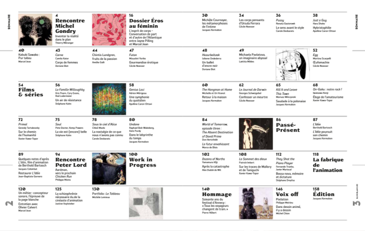 A l'occasion de la 27e édition du Festival national du film d'animation qui se déroulera en ligne du 7 au 20 avril, retrouvez dans le cadre des rendez-vous professionnels, une carte blanche accordée à la revue le mardi 20 avril à 20h en direct. Elle prendra la forme d'une table ronde reprenant le grand dossier proposé dans ce numéro 3, « Eros au féminin ».