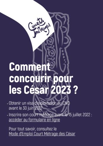 L'académie des César informe que pour être éligibles, en plus de l'obtention d'un visa d'exploitation avant le 30 juin 2022, les courts métrages devront désormais s'inscrire pour participer aux César avant le 15 juillet.