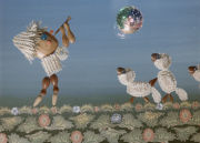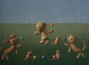 Un enfant joue tranquillement au milieu de la basse-cour avec des balles de couleur. D’abord, ce sont les souris qui aimeraient bien jouer avec. Puis le chat qui veut s’amuser avec les souris, puis le chien avec le chat… Jusqu’à l’irruption d’un nouvel arrivant…