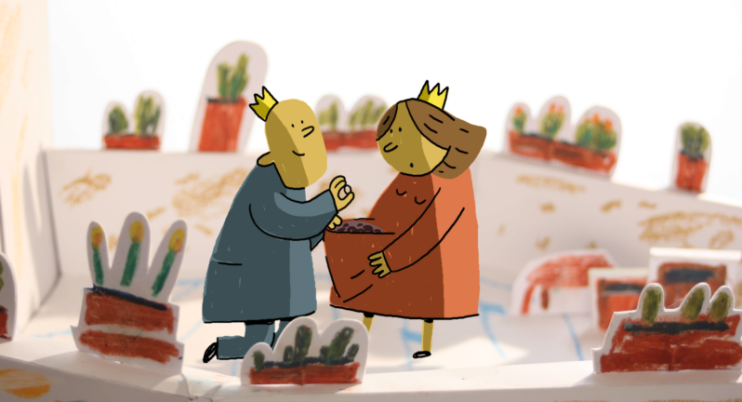 Princesse aubergine de Dina Velikovskaya : Une reine et un roi ont tout ce qu’ils peuvent désirer, à part une chose… ils cherchent désespérément la graine qui leur permettra de voir naître un enfant pour égayer leur foyer. C’est alors qu’arrive dans le royaume une petite mendiante…