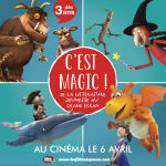 Fêtez cet anniversaire au cinéma en compagnie de Gruffalo père et fils, Monsieur Bout-de-Bois, La Baleine et l’escargote, et Zébulon le dragon… réunis dans 4 programmes pour une rétrospective "C’est Magic !"Mots-clés :