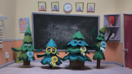 L’Ecole des sapins d'Anastasia Makhlina (2022, Russie, 8') : Un cactus travaille comme concierge dans une école d’arbres de Noël. Il observe avec envie leur apprentissage et rêve de devenir un jour le héros de la fête : un beau sapin entouré d’amis.