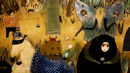 La nuit, tandis que les membres d’une famille s’adonnent à de curieux rituels avant de s’endormir, un enfant invoque un loup au fond d’une boîte cachée sous son lit. D’inquiétants moutons assiègent alors la porte de sa chambre…